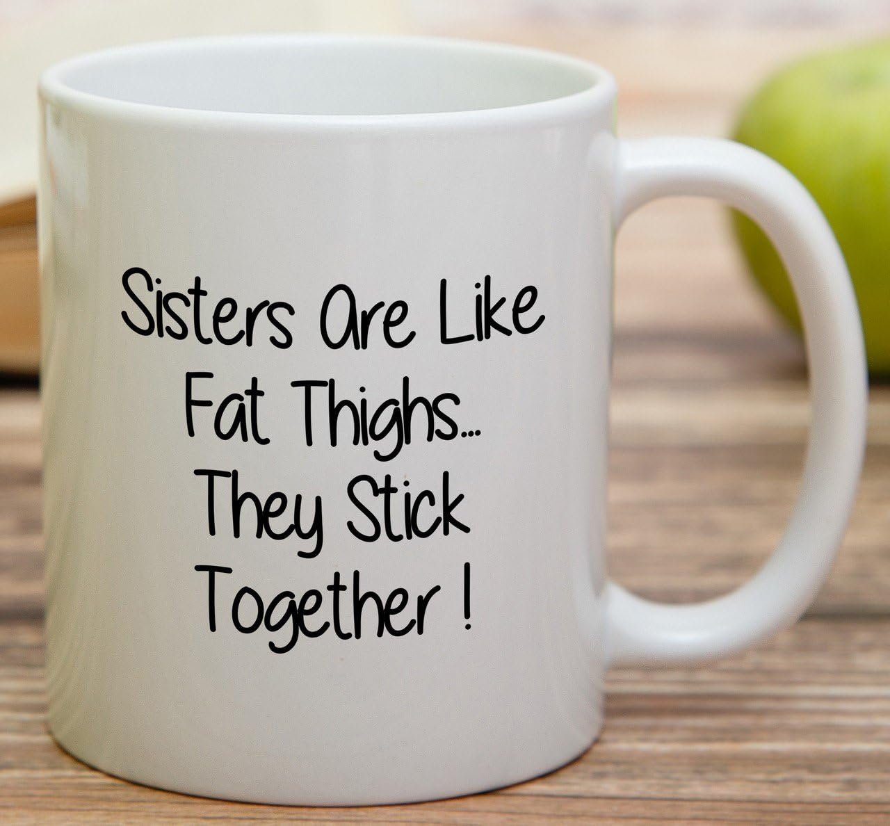 Retreez Funny Sisters Are Like Fat Thighs They Stick Together! 11 Oz Ceramic Coffee Mugs