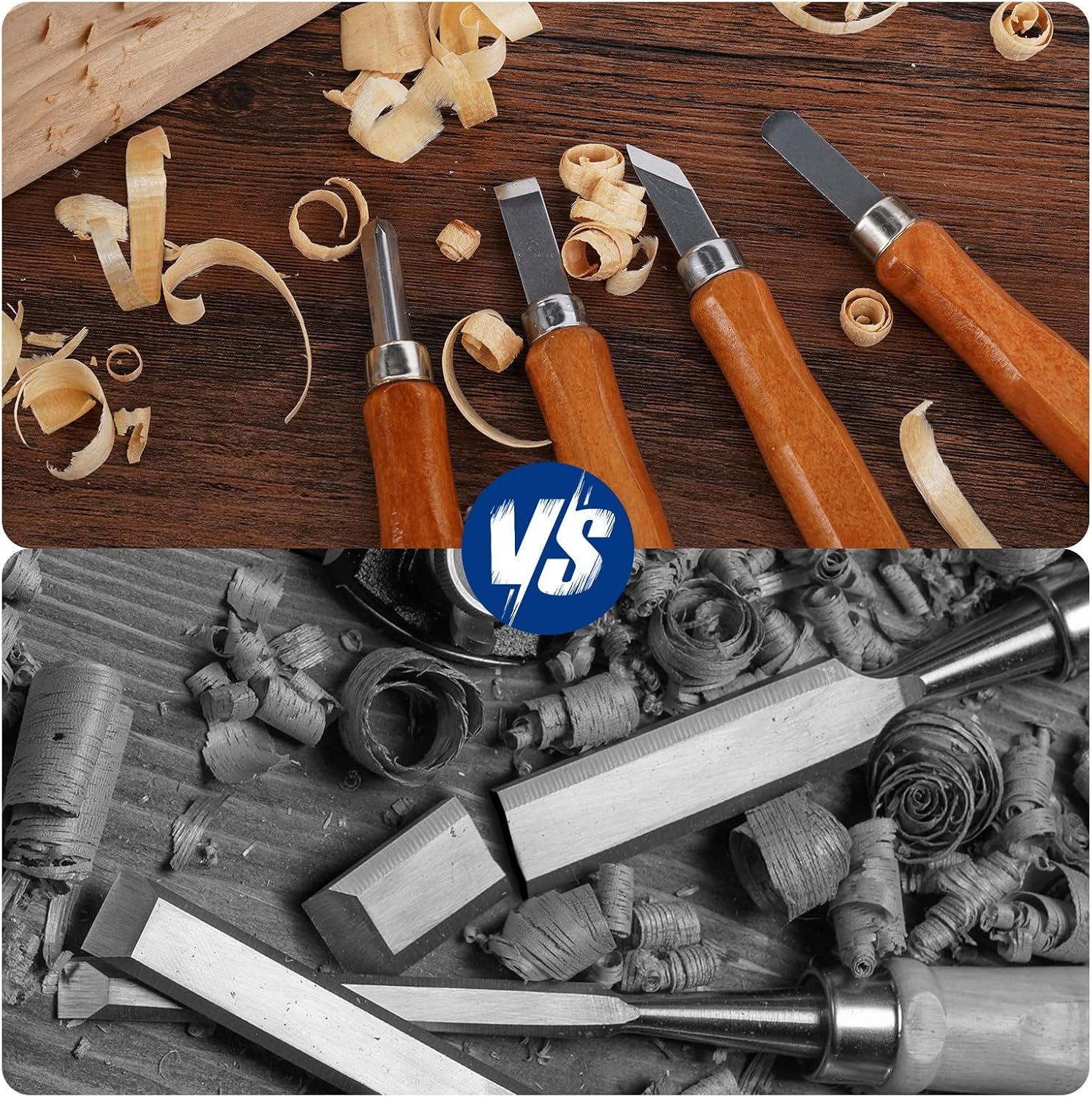 【High-Carbon Steel Blades for Lasting Precision】 Our wood carving tools set features high-carbon steel blades for sharpness, edge retention, and corrosion resistance. Perfect for any wood whittling kit, these carving knife wood blades provide smooth, precise cuts for both delicate and heavy-duty projects, ensuring an efficient and enjoyable carving experience.