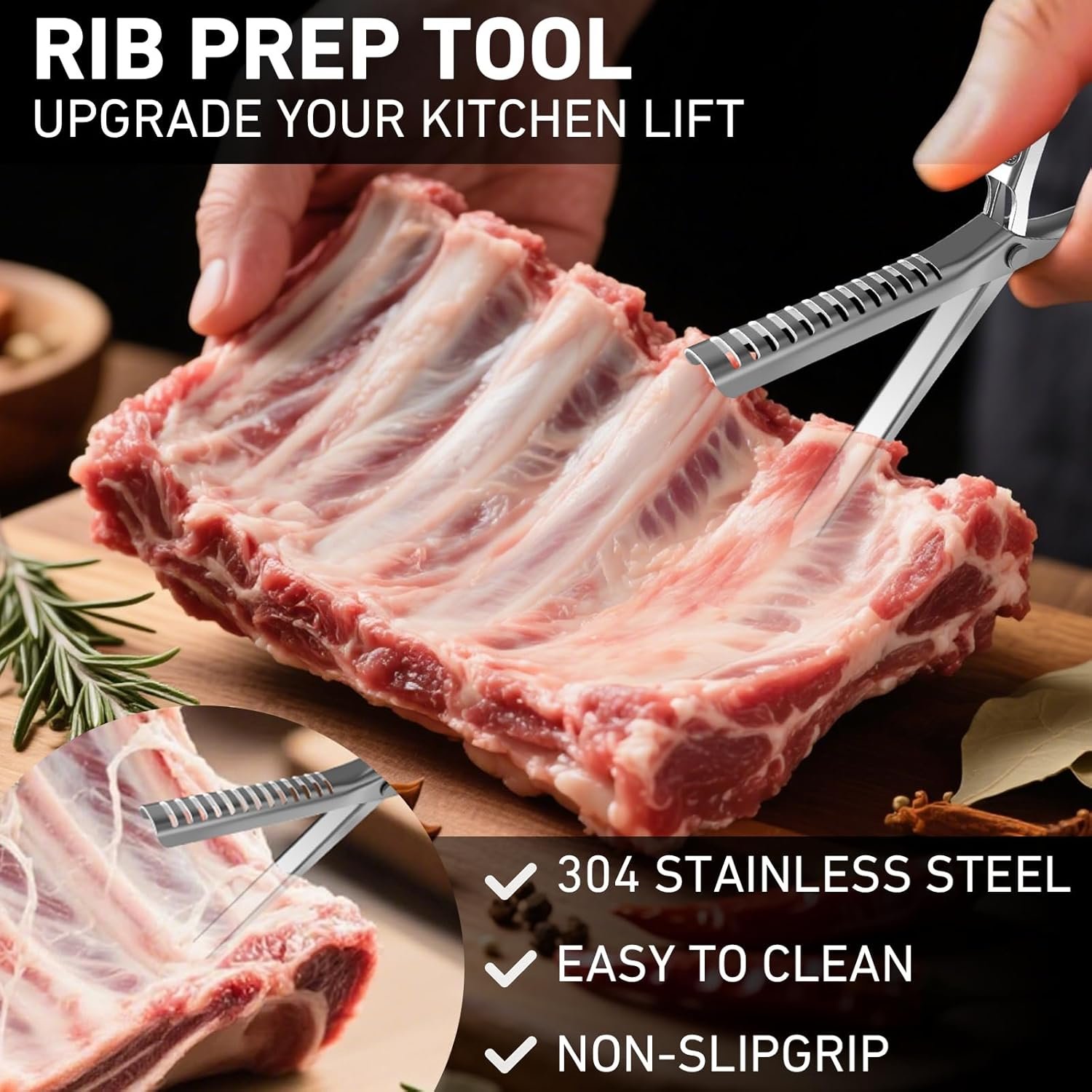 Rib Prep Pro, Stainless Steel Rib Membrane Remove Tool Kit, BBQ Rib Skinner Skin Removal Tool with Arc Clamp & Non-Slip Grip for Easy Membrane Removal, Kitchen Gadget for Barbecue Enthusiasts (1 PC)