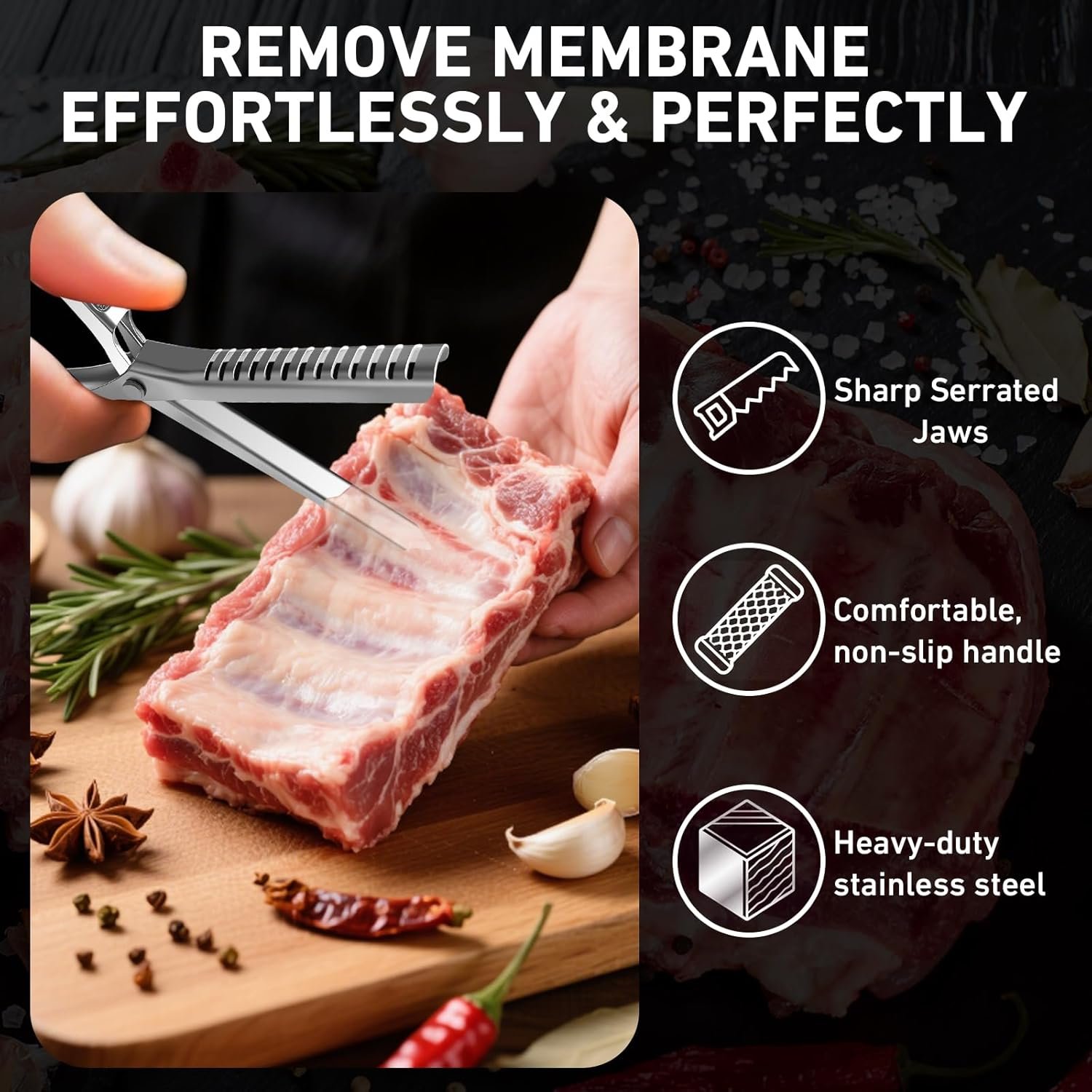 [Precision Rib Membrane Removal] – Specially designed to peel silver skin cleanly and quickly from pork ribs or beef ribs, preserving meat integrity for juicier, better-tasting BBQ. Saves time in meat preparation, making it essential for grilling, smoking, and competition BBQ.