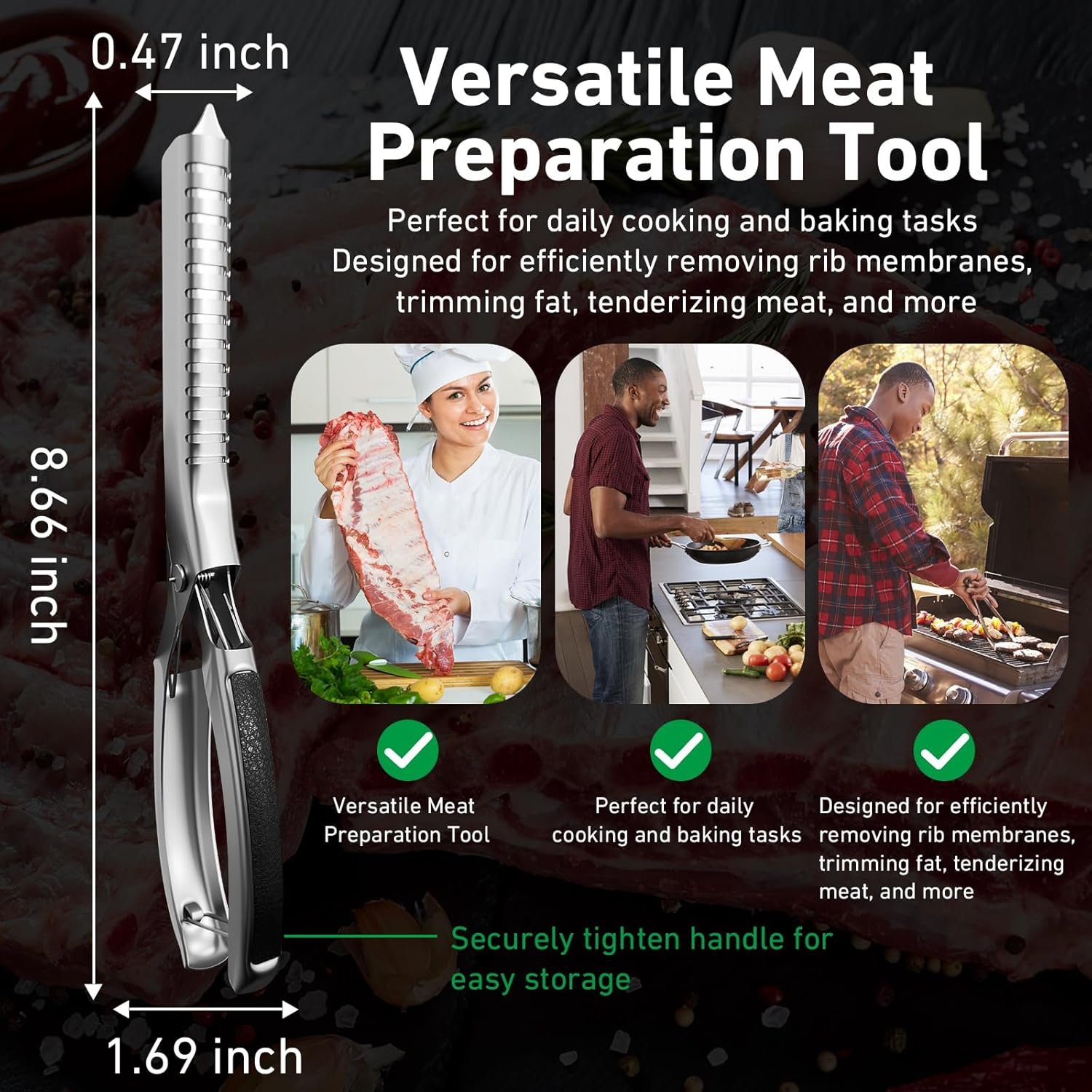 [Premium Stainless Steel Construction] – Crafted from high-grade stainless steel, our rib membrane remover is rust-resistant and built for long-lasting sharpness. Effortlessly removes silver skin and rib fascia while staying durable through years of use in home kitchens or professional BBQ prep.