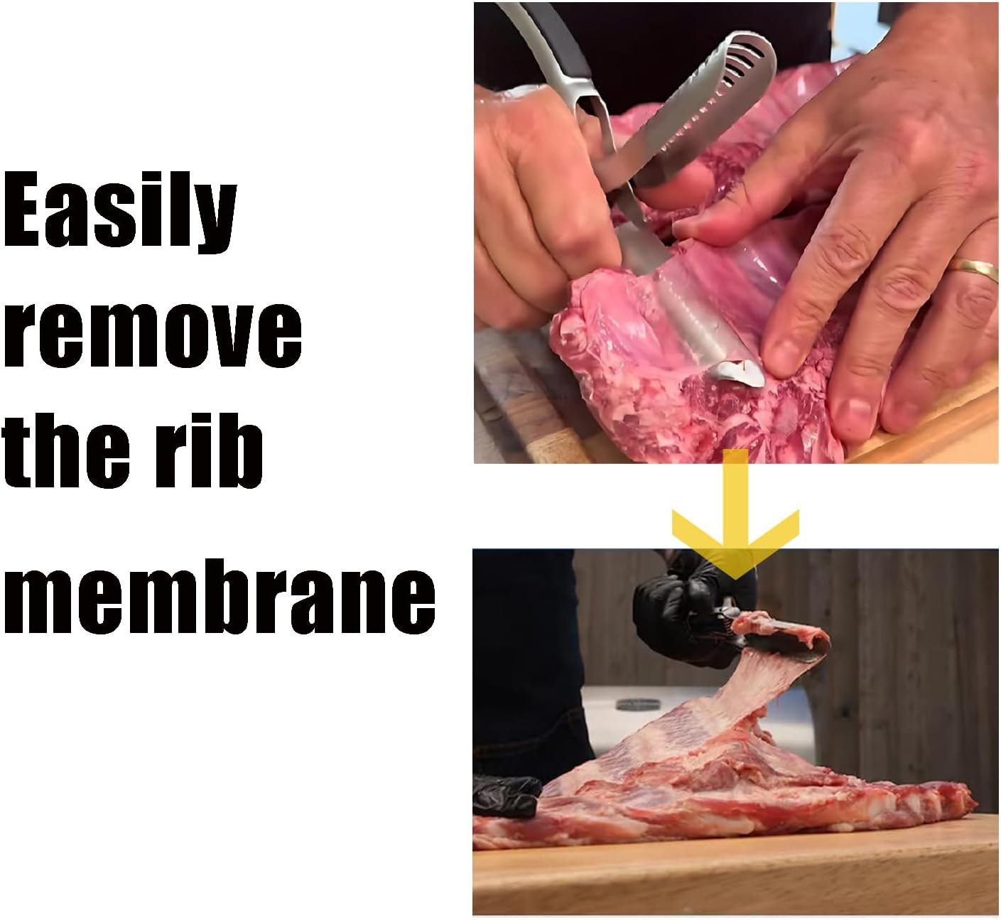 Efficient Silver Skin Removal:Designed for quick and clean removal of silver skin and fascia from ribs, this tool enhances barbecue preparation efficiency, preserving meat integrity for better taste and texture