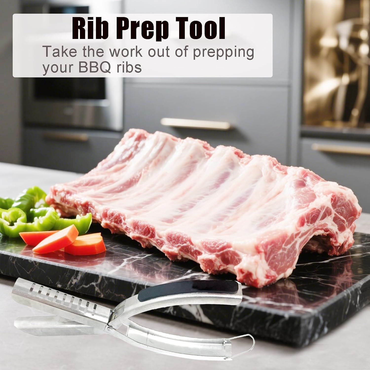 Rib Prep Tool, Rib Prep Pro Stainless Steel Rib Membrane Remover Tools, BBQ Rib Skinner Tool with Arc Clamp & Non-Slip Grip for Easy Membrane Removal, Kitchen Gadget for Barbecue Enthusiasts & Chefs