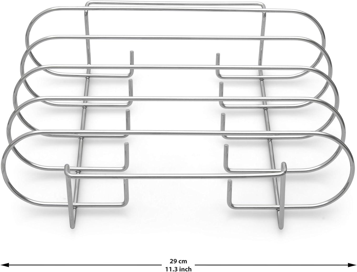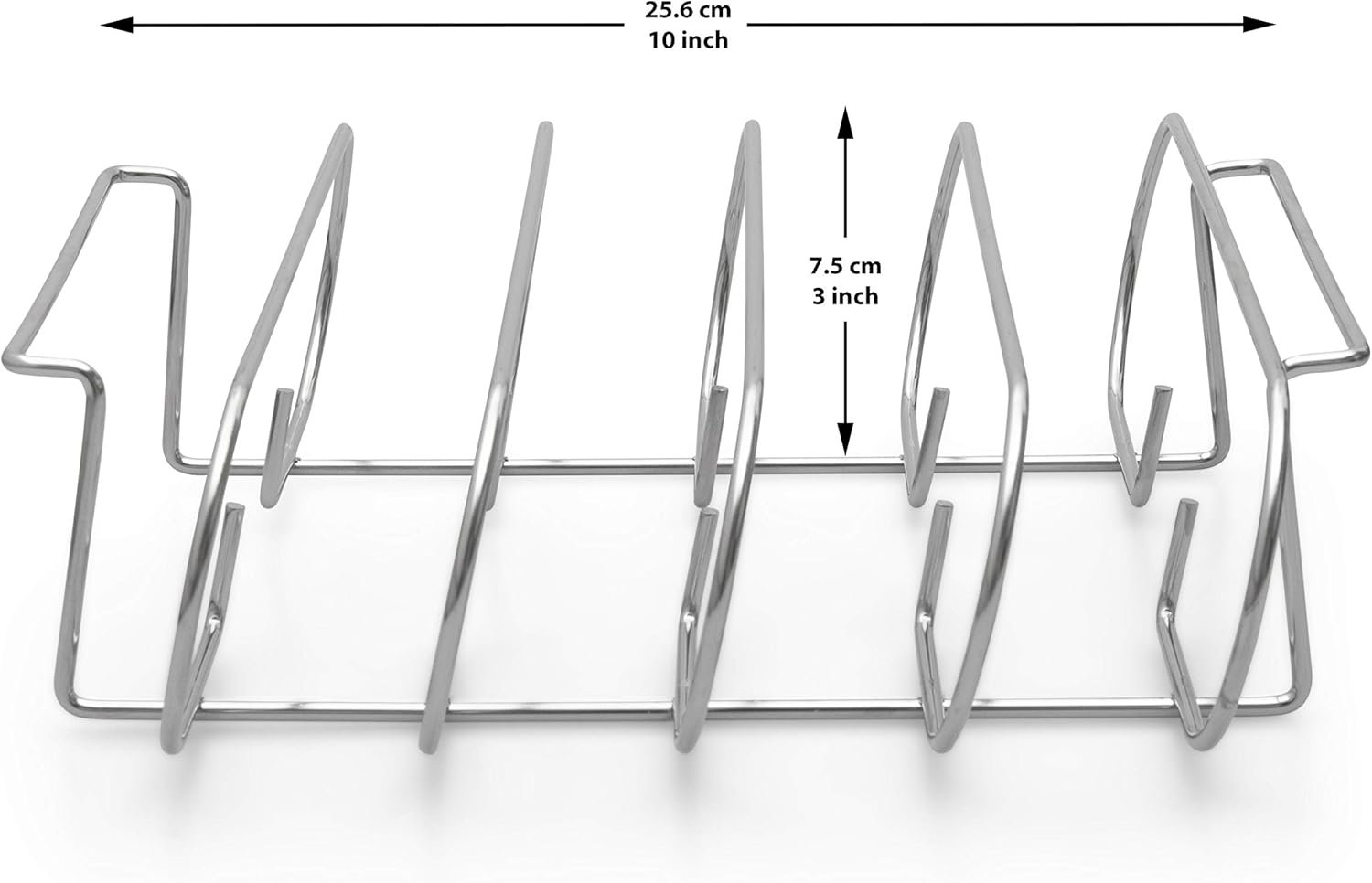 The Venmark BBQ rib rack is made from heavy duty stainless steel and promotes even and fast cooking, ideal for roasting, grilling, and smoking outdoors or indoors.