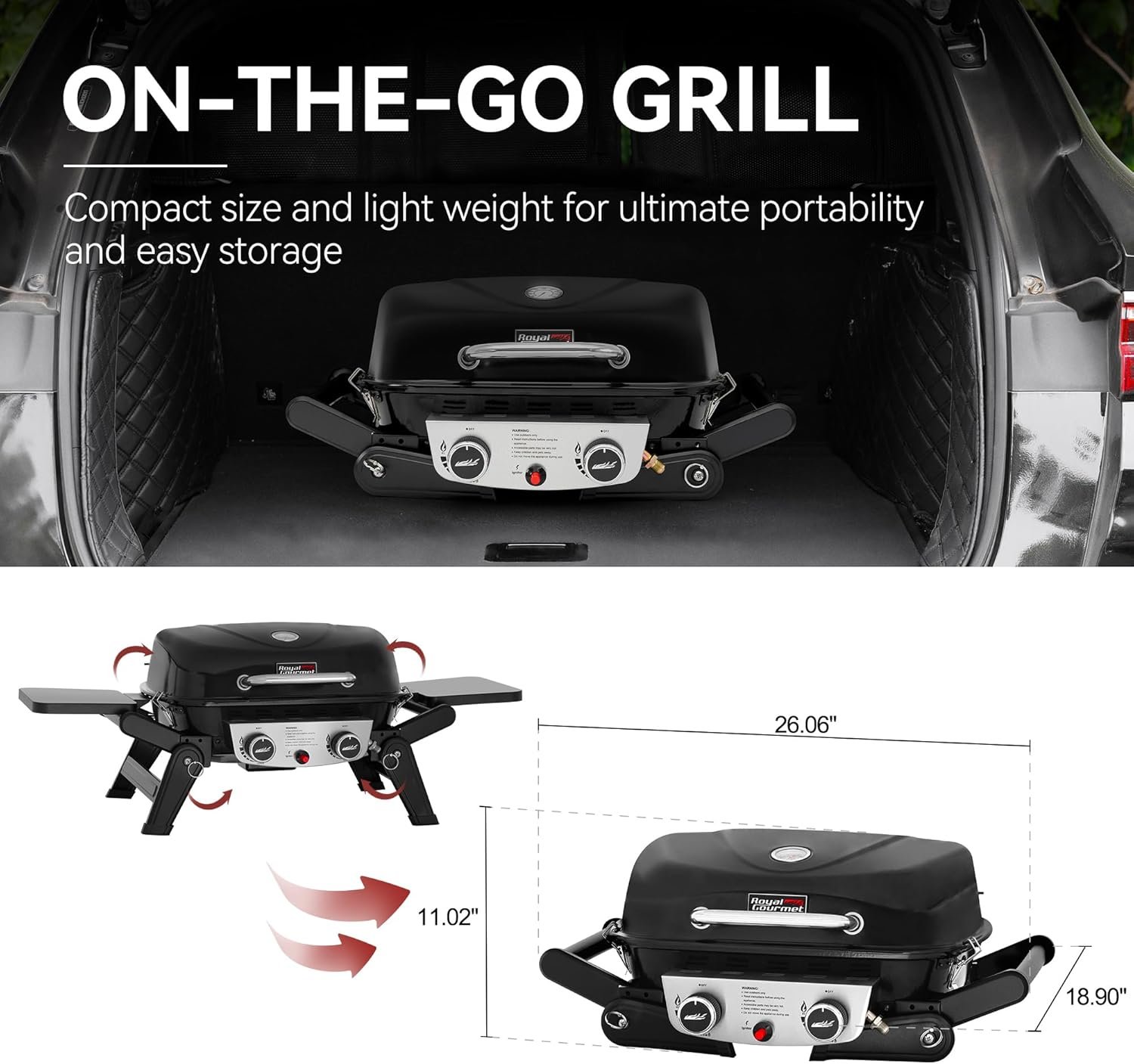 Compact Size: Measuring just 26.06 x 18.90 x 11.02 in. when side tables and support legs are folded, this propane grill is your perfect outdoor companion, making it easy transportation and snug storage in your trunk or RV without occupying much space