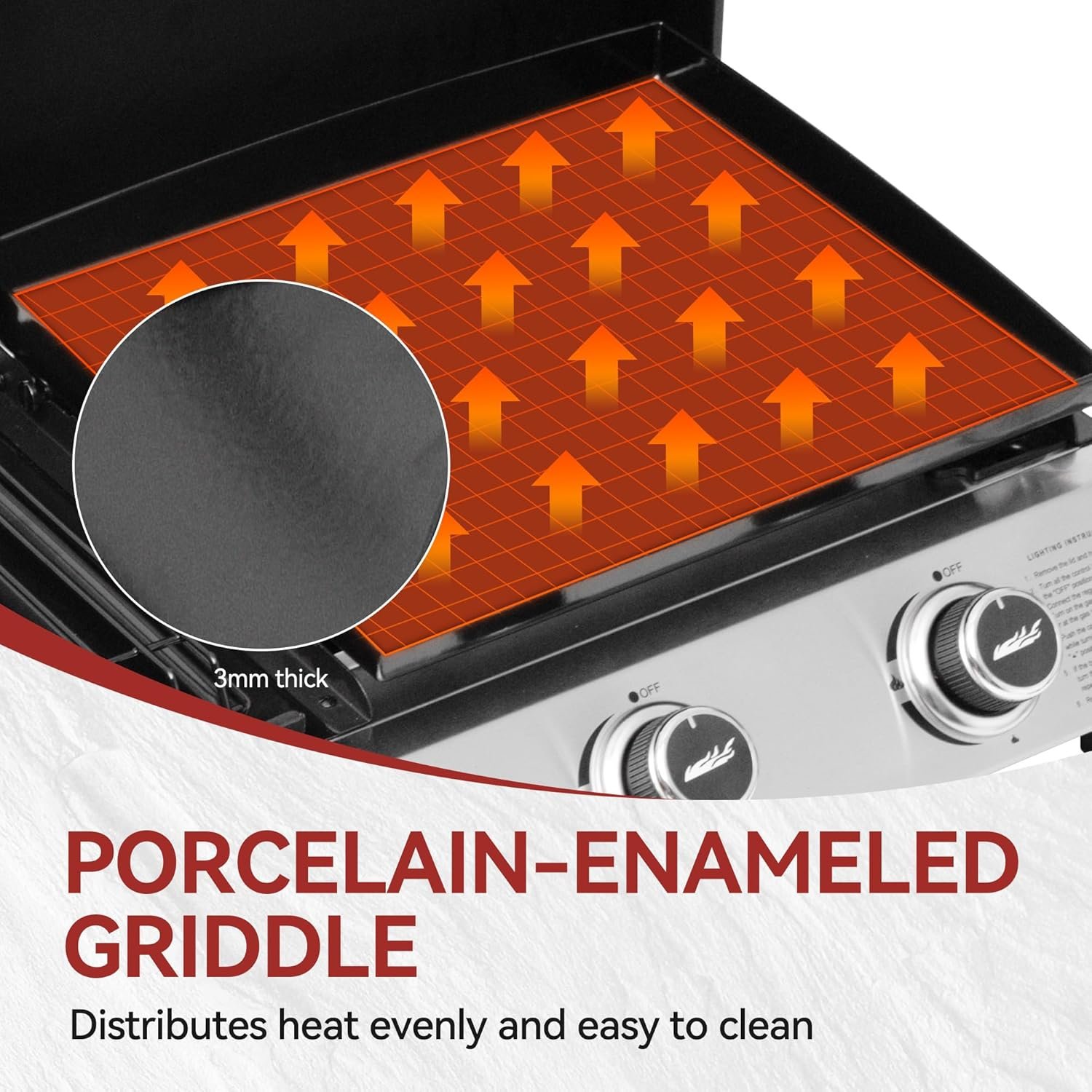 Versatile Outdoor Performance: Master Even Heat Control (stainless steel burners, flame tamers, porcelain surfaces). This portable griddle grill combo excels for versatile outdoor adventures like camping, BBQs, and tailgate parties, making gatherings memorable