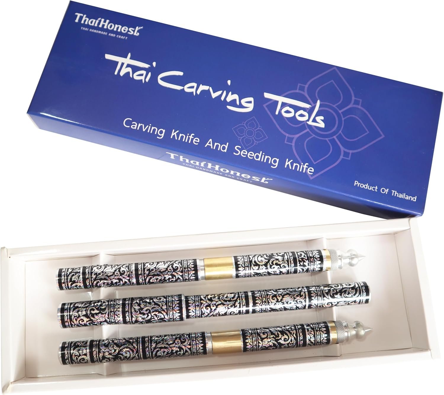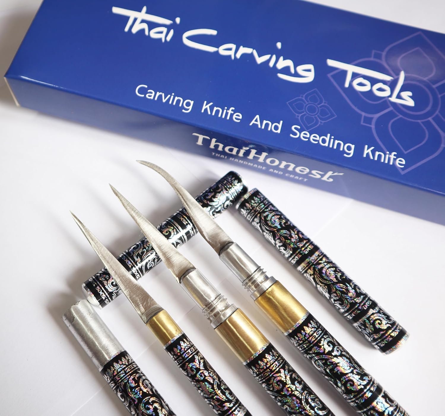 Complete Set for Creative Carving – Includes three specialized carving knives for a variety of cutting techniques, ideal for Thai carving, intricate garnishes, and detailed fruit sculptures.