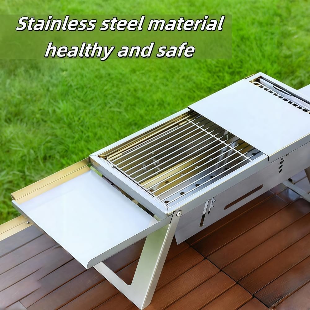 High Quality Built Stainless Grill: Experience safety and durability with our stainless steel grill grate. The accompanying iron-carbon tray efficiently traps charcoal ash, simplifying the cleaning process for your convenience