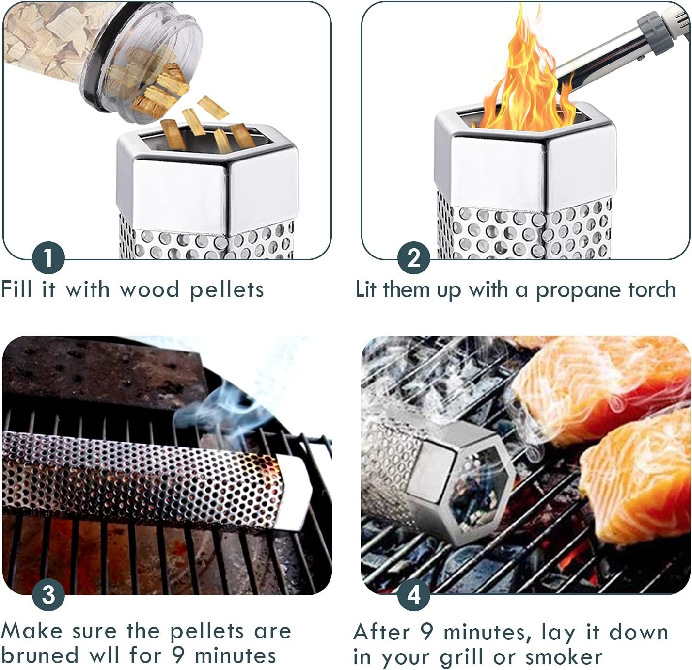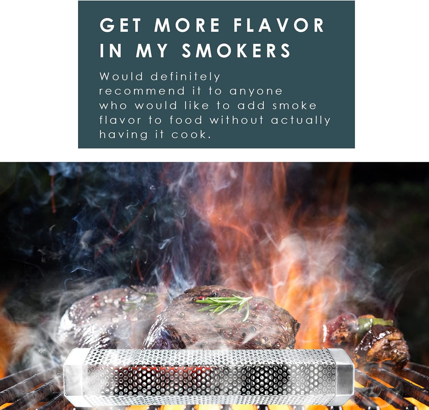 IMPROVED DESIGN AND 304 STAINLESS STEEL MATERIAL: The hex cross-section helps it stay stable on any grate and doesn’t roll around, stays in place to provide balanced smoking. 304 stainless steel, which is safe, durable and easy to clean