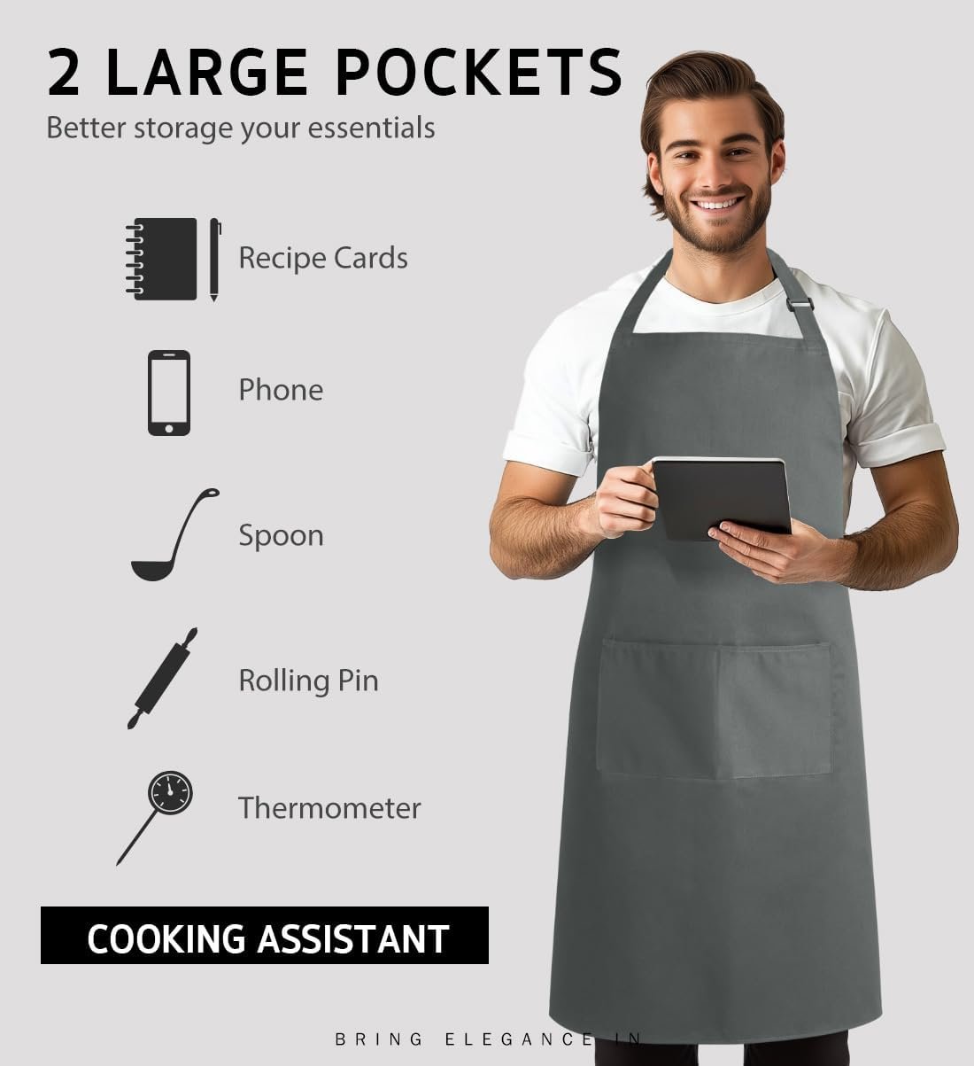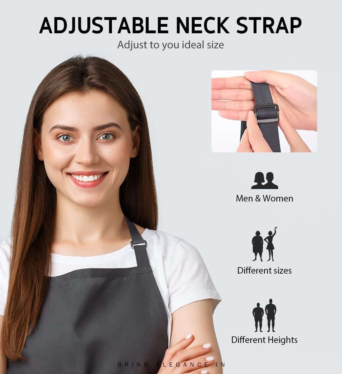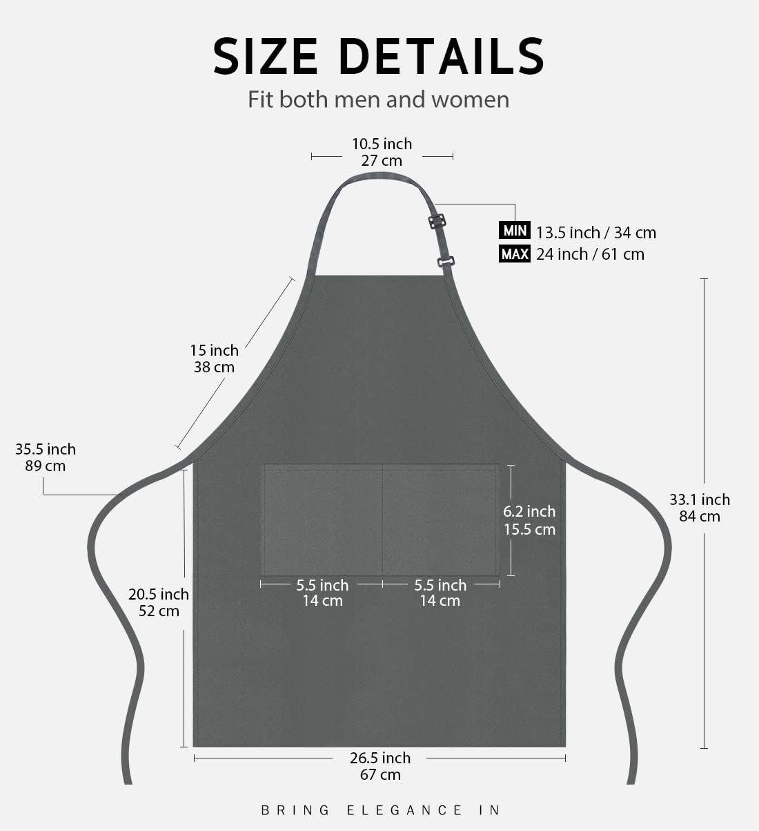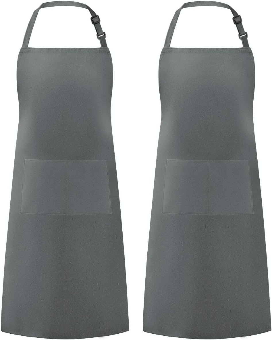 Syntus 2 Pack Adjustable Bib Apron Waterdrop Resistant with 2 Pockets Cooking Kitchen Aprons for Women Men Chef