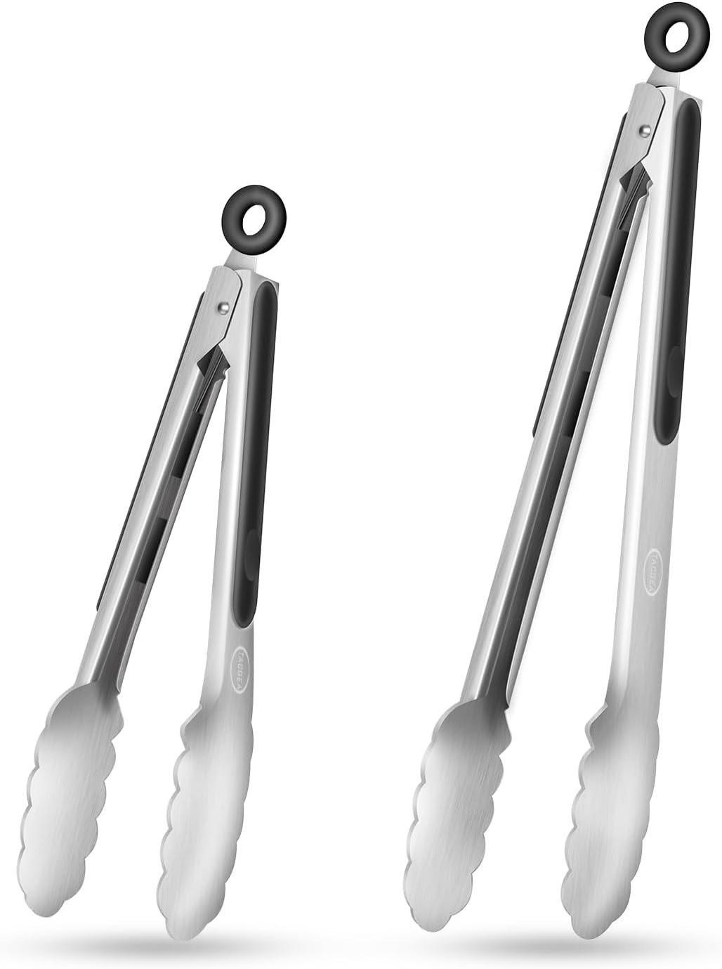 TACGEA Stainless Steel Kitchen Tongs, Silicone Non-slip Grip, Locking Grilling Food Tongs Set of 2, 9-inch & 12-inch