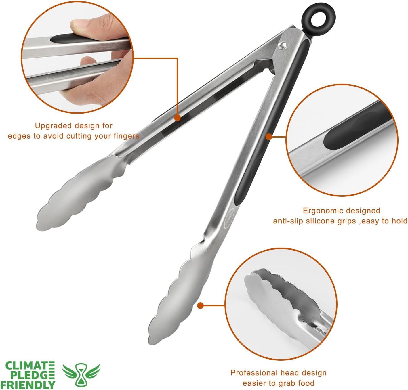【ERGONOMIC HANDLE DESIGN】Handle is cushioned with non-slip silicon, good for thumb rest and ensures good grip and control. The metal tong head is super heat resistant.