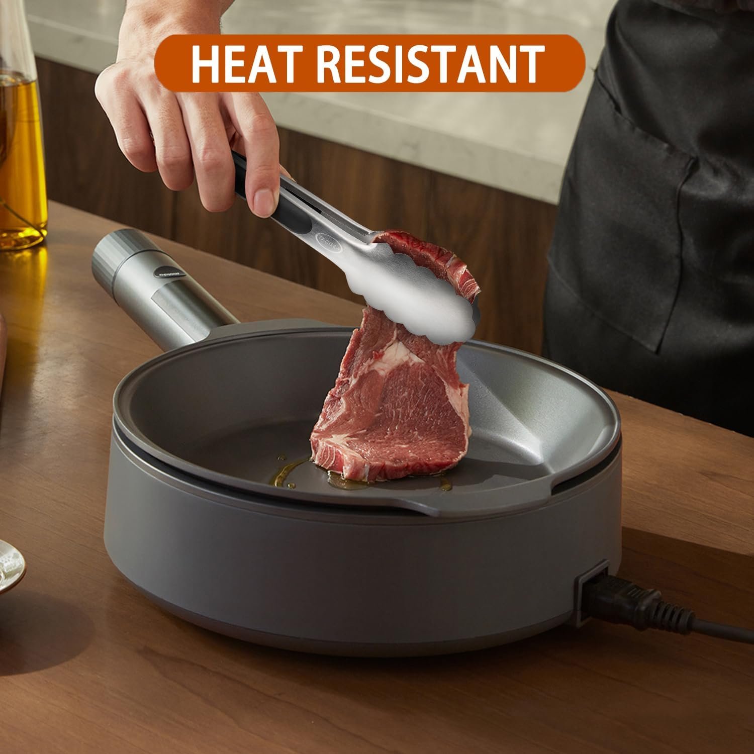 Made of durable 304 stainless steel. BPA free and odorless. The metal tong head is super heat resistant.