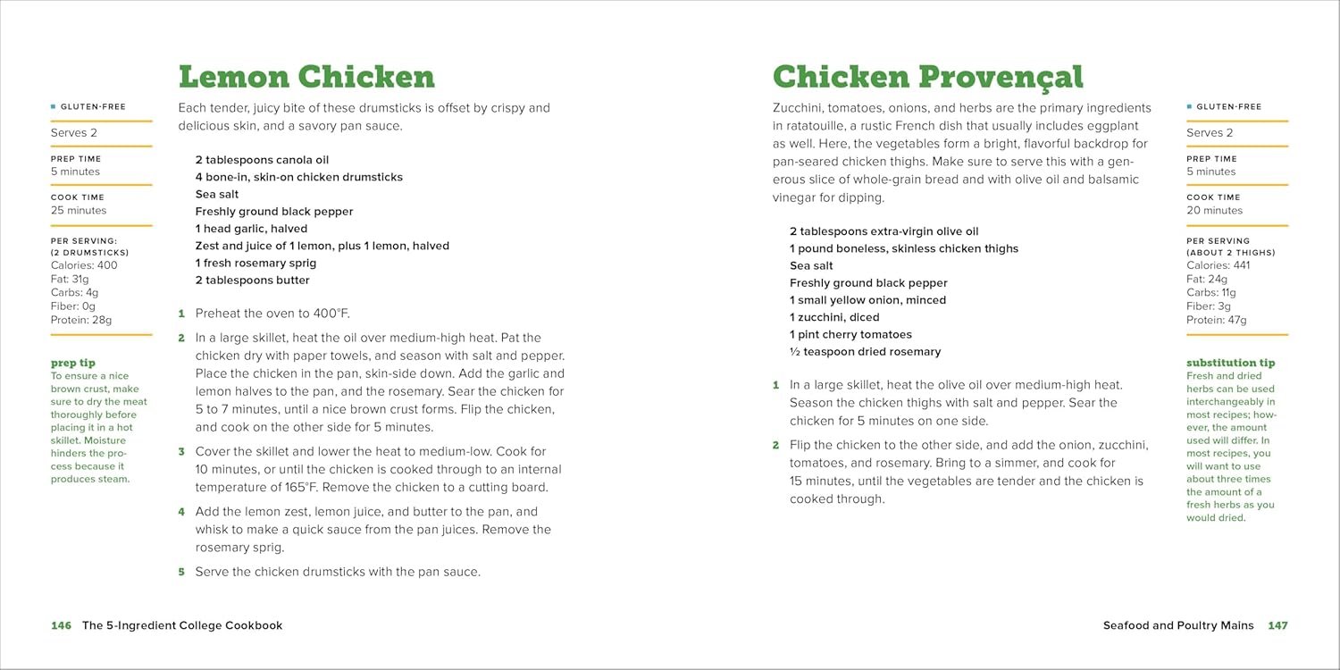 College students don’t typically have a lot of time, money, or kitchen space to get fancy with their meals―which means good and cheap is the name of the game. This college cookbook makes it easy for students to prepare fresh, balanced meals for themselves on a budget, with more than 100 recipes that only take 30 minutes to throw together, and only require 5 main ingredients.