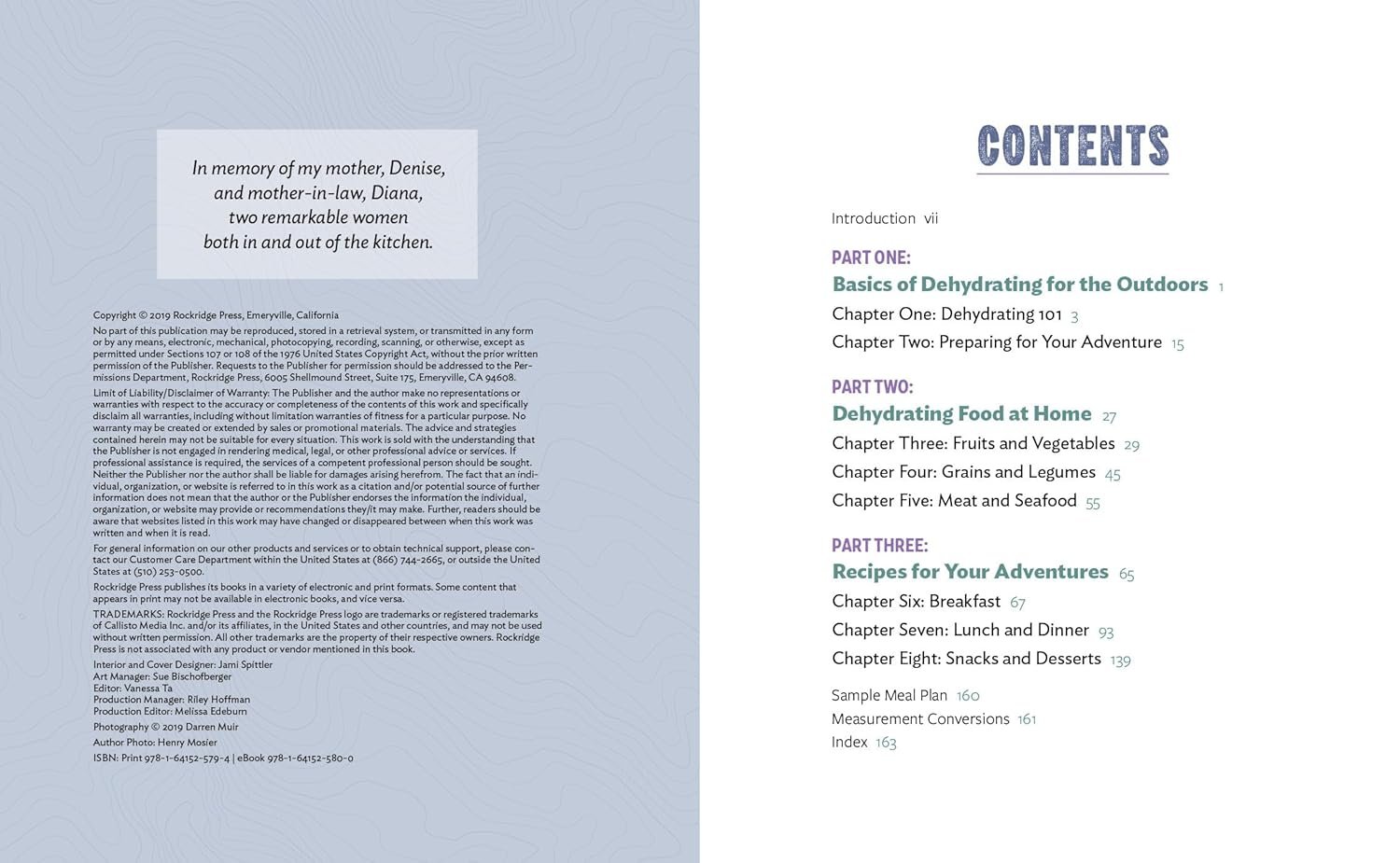 For every meal―Enjoy a variety of flavorful recipes for breakfast, lunch, and dinner (and don’t forget dessert!) from this dehydrator cookbook.Nutritious staples―Create your own combos with instructions for easily dehydrating individual foods like fruits, veggies, and grains.Planning and prep―You’ll be prepared with plenty of meal planning tips for your adventures, including a sample menu for reference.