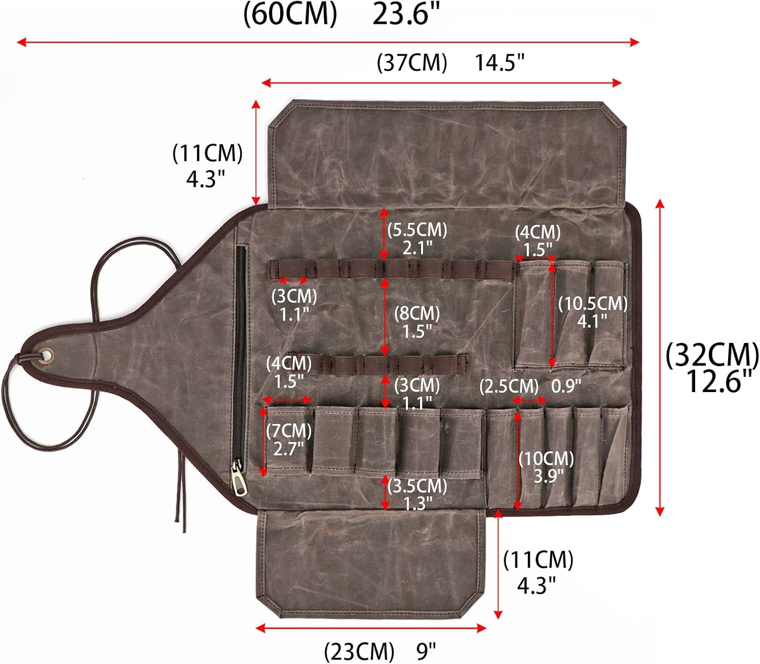 TOURBON Waxed Canvas Tool Roll Up Bag, 25-Pocket Wood Carving Chisel Carrying Case, Multi-Purpose Tool Pouch with Zipped Compartments