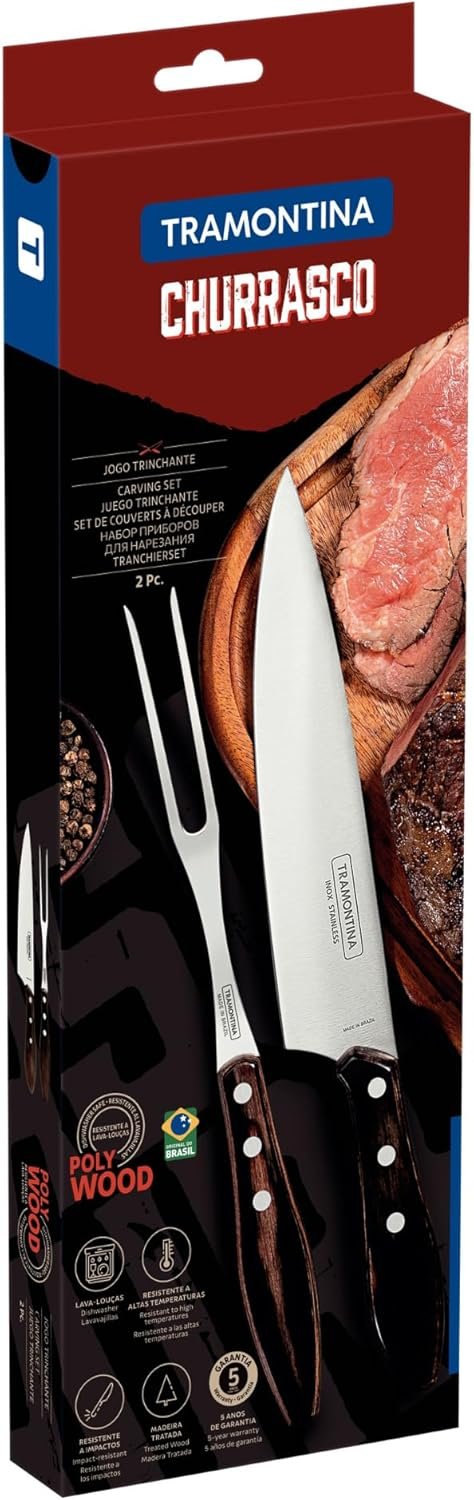 Tramontina Churrasco Carving Set, 2 Piece Brown Gift Boxed, Stainless Steel, Medium