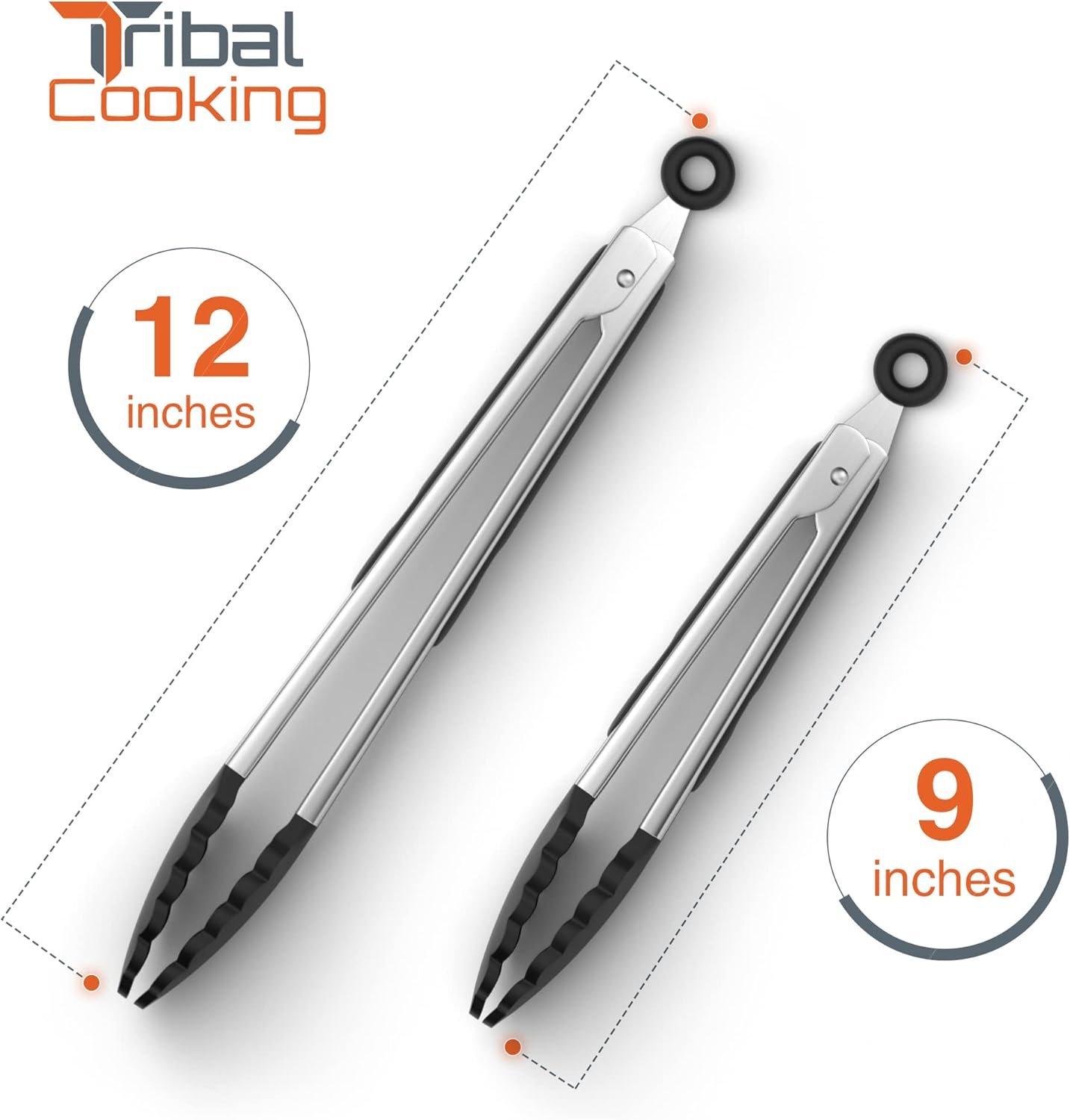 Tribal Cooking Stainless Steel Tongs – 9″ and 12″ With Silicone Tips, Locking BBQ Tongs