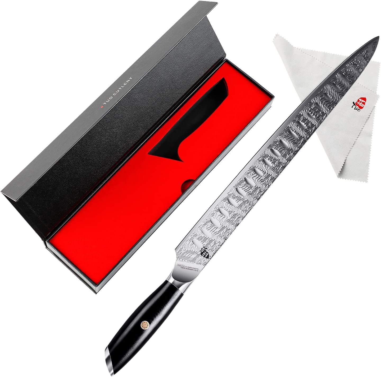 Best Gift Choice: This slicing knife is a gift choice for your family and friends, on Christmas, Thanksgiving, anniversaries and other holidays. The textured gift box will make it more meaningful. After you purchase, tuo will also provide you with lifelong after-sales service.