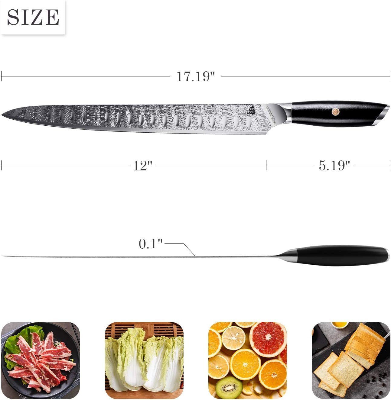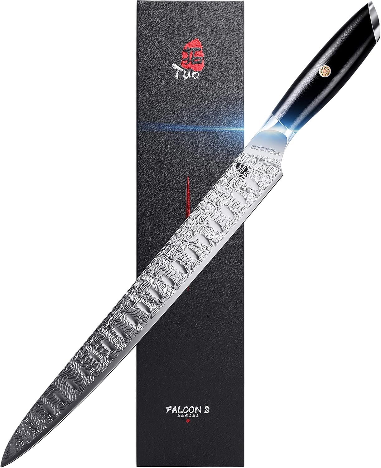 TUO Slicing Knife 12 inch – Slicing Carving Knife for Brisket Turkey Meat, AUS-8 Japanese Stainless Steel with Full Tang G10 Handle – Falcon S Series with Gift Box
