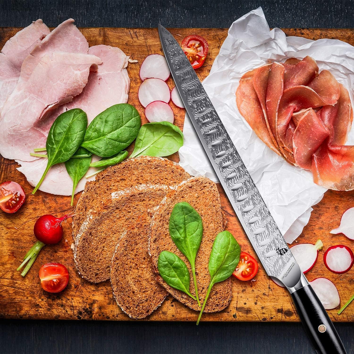 Ergonomic G10 Handle: The G10 material is more textured and reinforced with rivets, the handle of the slicing knife can provide a comfortable and secure grip. Fits perfectly in your hand, no matter your hand size, right or left handed and where you grip.