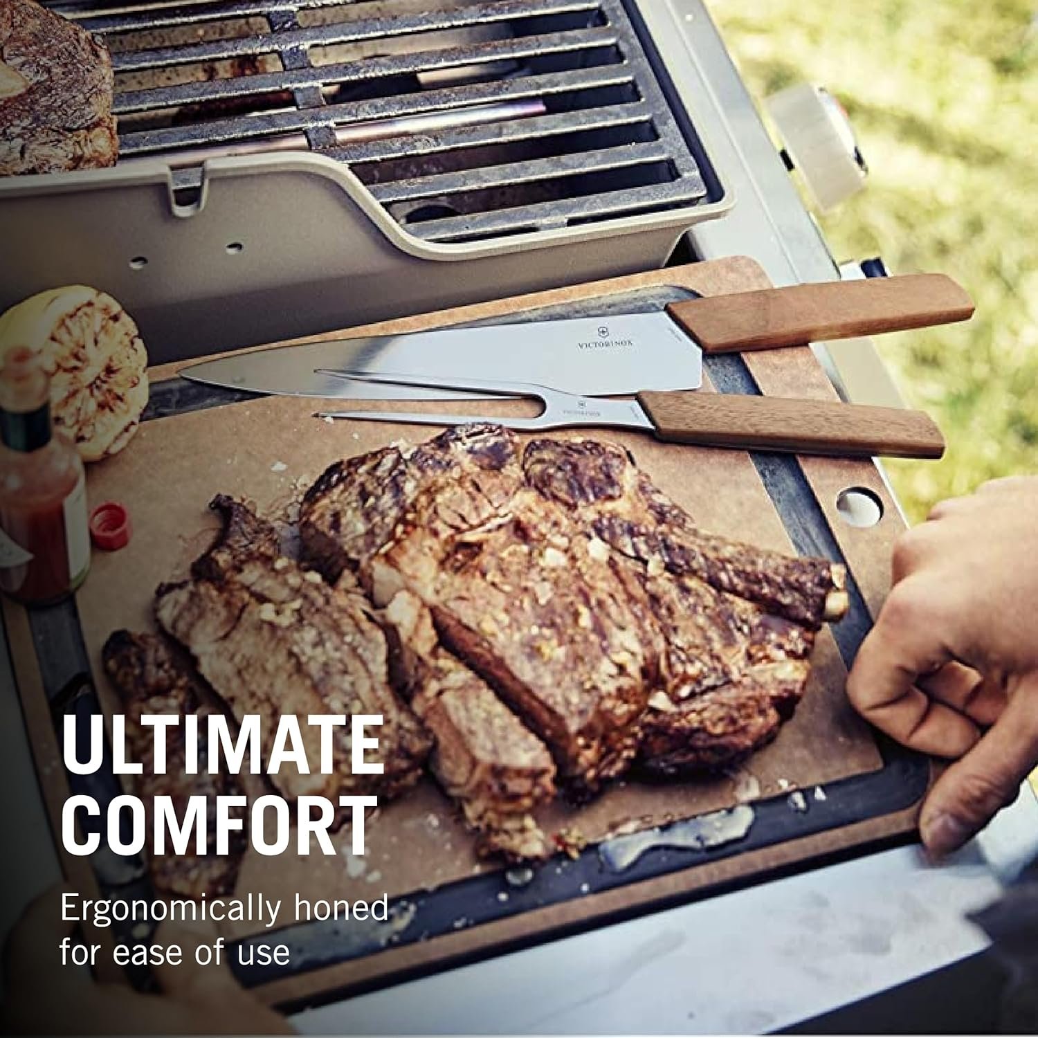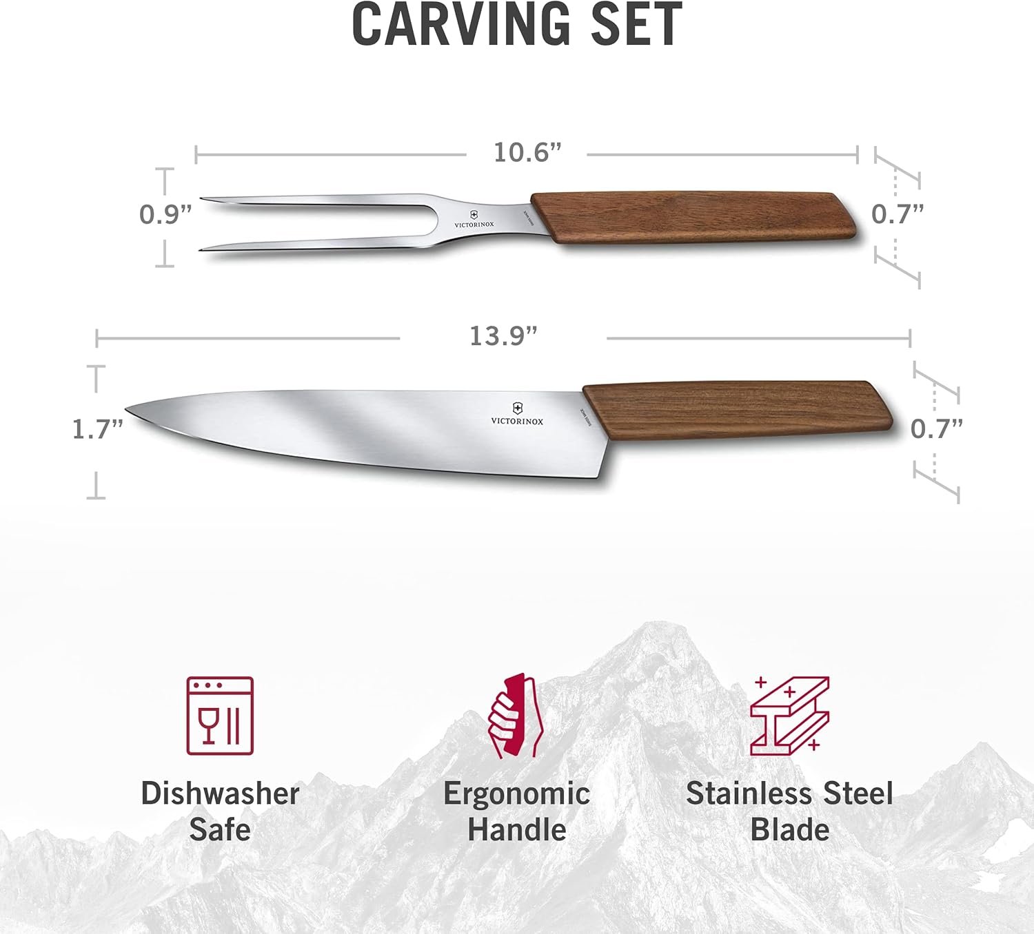 Victorinox Swiss Modern Carving Set – Includes Carving Knife & Carving Fork – Premium Kitchen Accessories – Walnut Wood Handles, 2-Piece Set