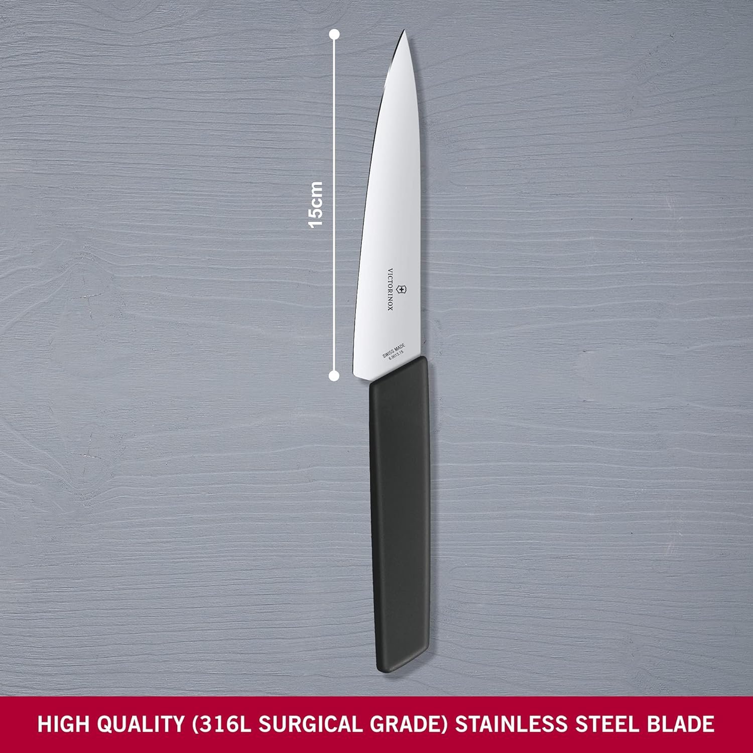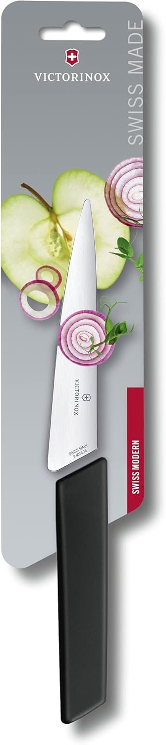 Victorinox Swiss Modern Chef’s Knife – Kitchen Knife Perfect for Peeling & Core Removal – Cooking Knife for Kitchen Accessories – Pointed Blade, Black Handle, 6″