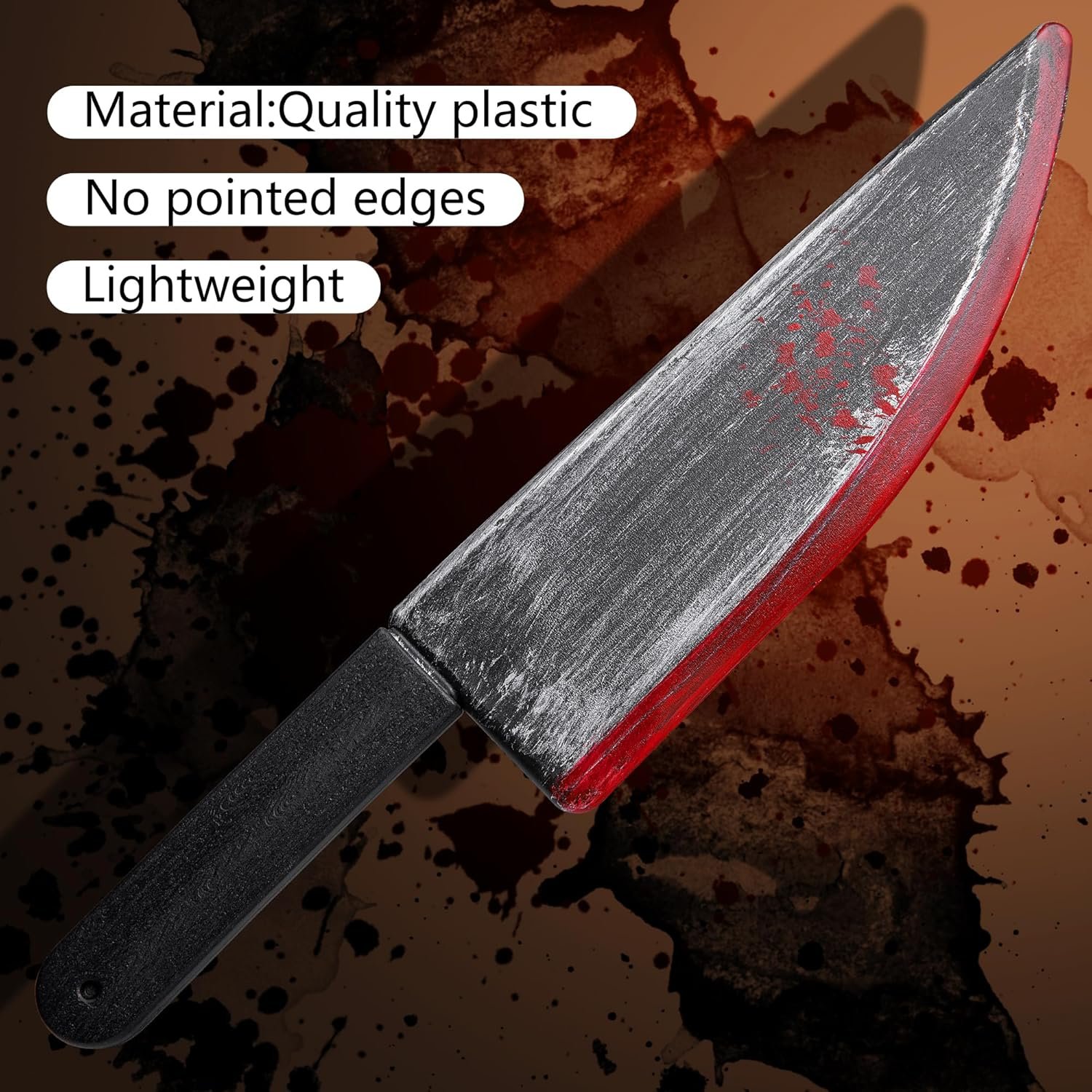 (2)The butcher prop knife is designed in plastic knife with fake blood, which looks realistic and makes people feel shocked and scared when they see it.