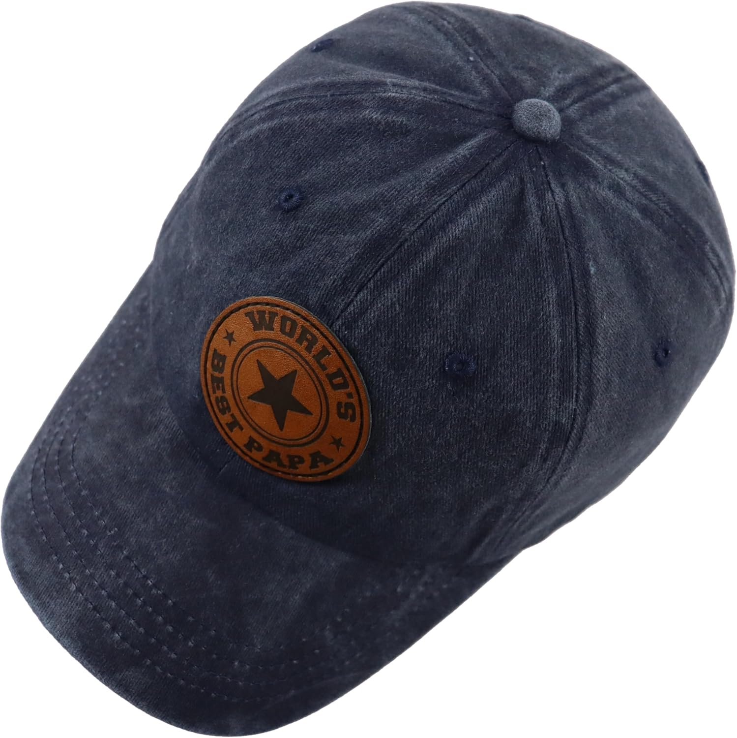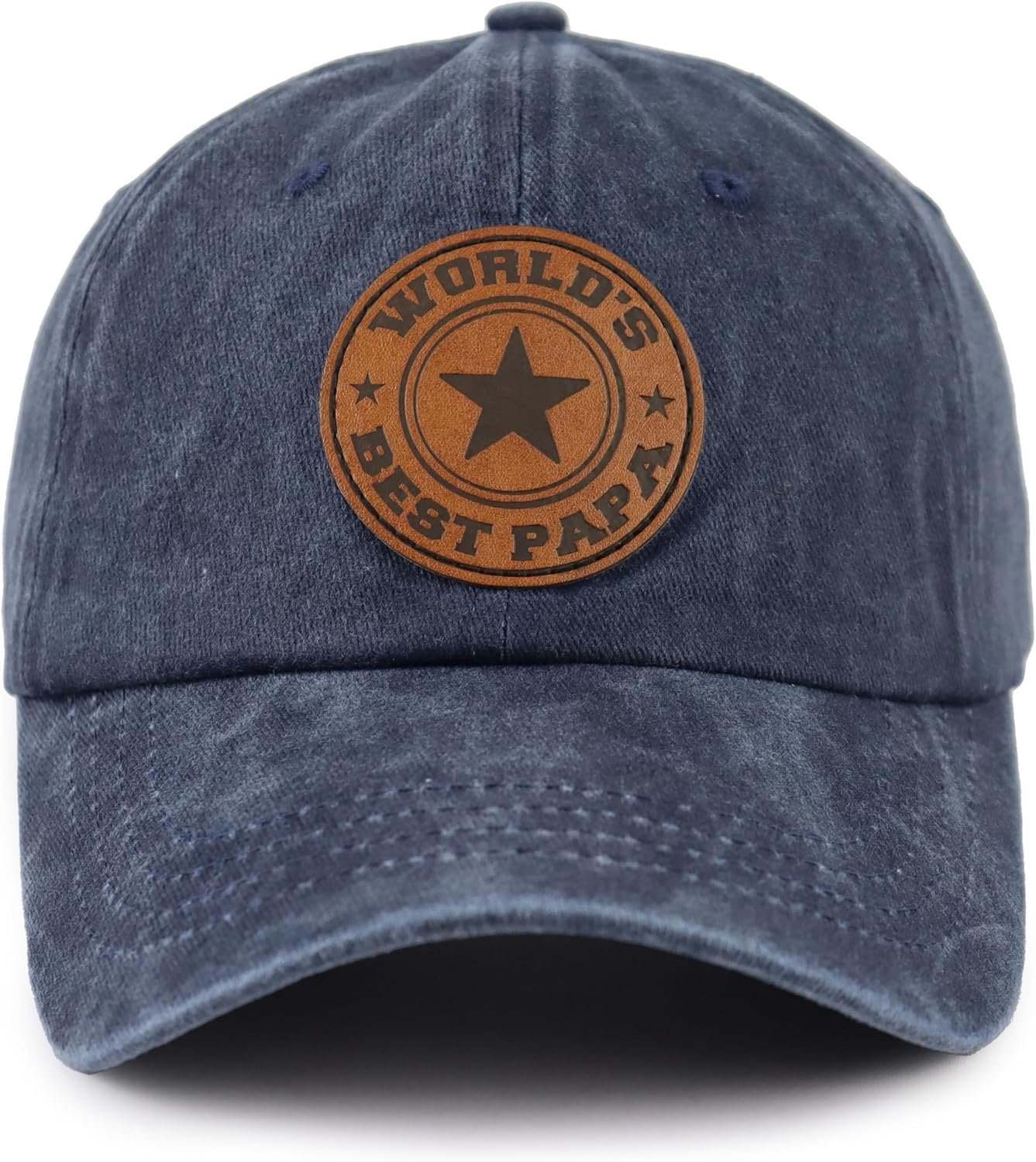 World’s Best Papa Grandpa Hat with Leather Patch, Adjustable Embroidered Cotton Fathers Day Dad Baseball Cap