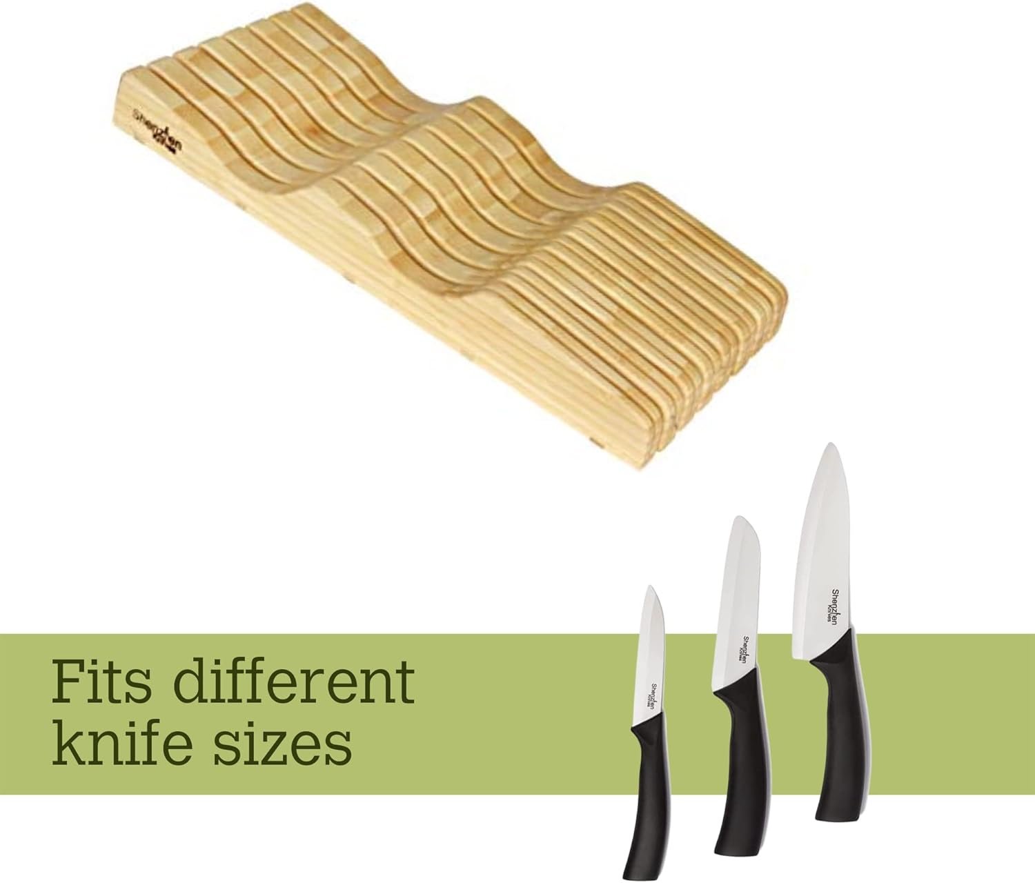 SUSTAINABLE BAMBOO: An alternative to the use of traditional hard wood trees, our in-drawer knife blocks are beautifully crafted using real bamboo to be ultra durable and easy to clean.