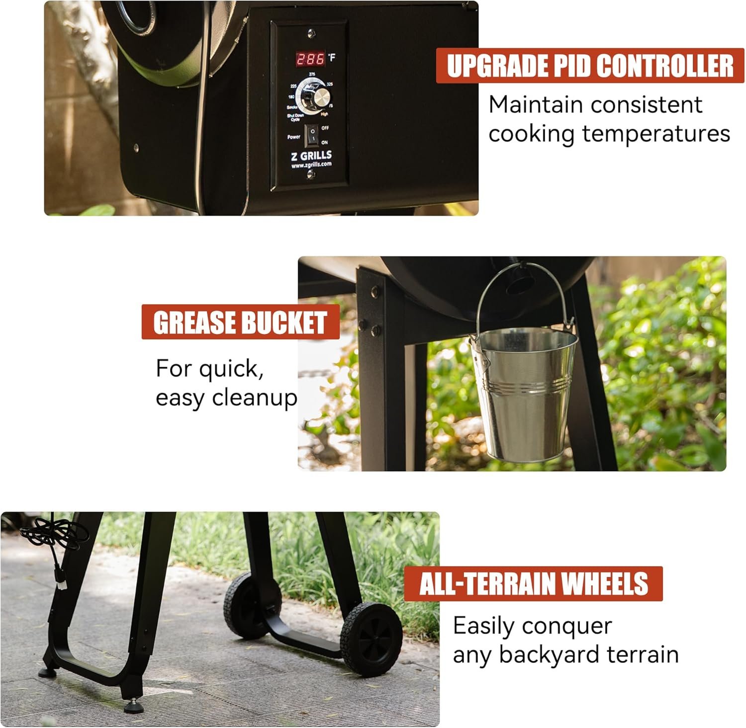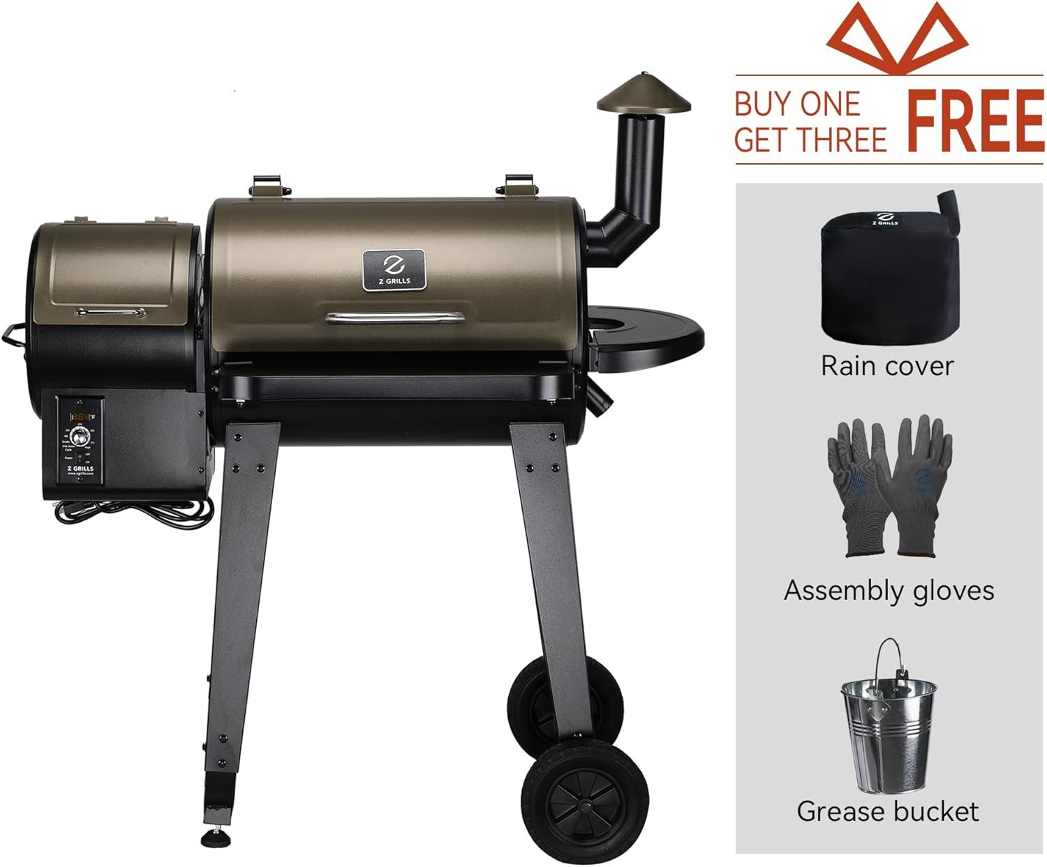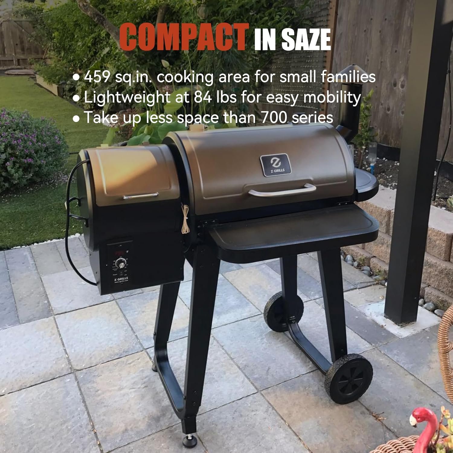 Z GRILLS 2024 Wood Pellet Grill Smoker,8 in 1 Portable BBQ Grill with Automatic Temperature Control,Foldable Front Shelf,Rain Cover,459 sq in Cooking Area for Patio,Backyard
