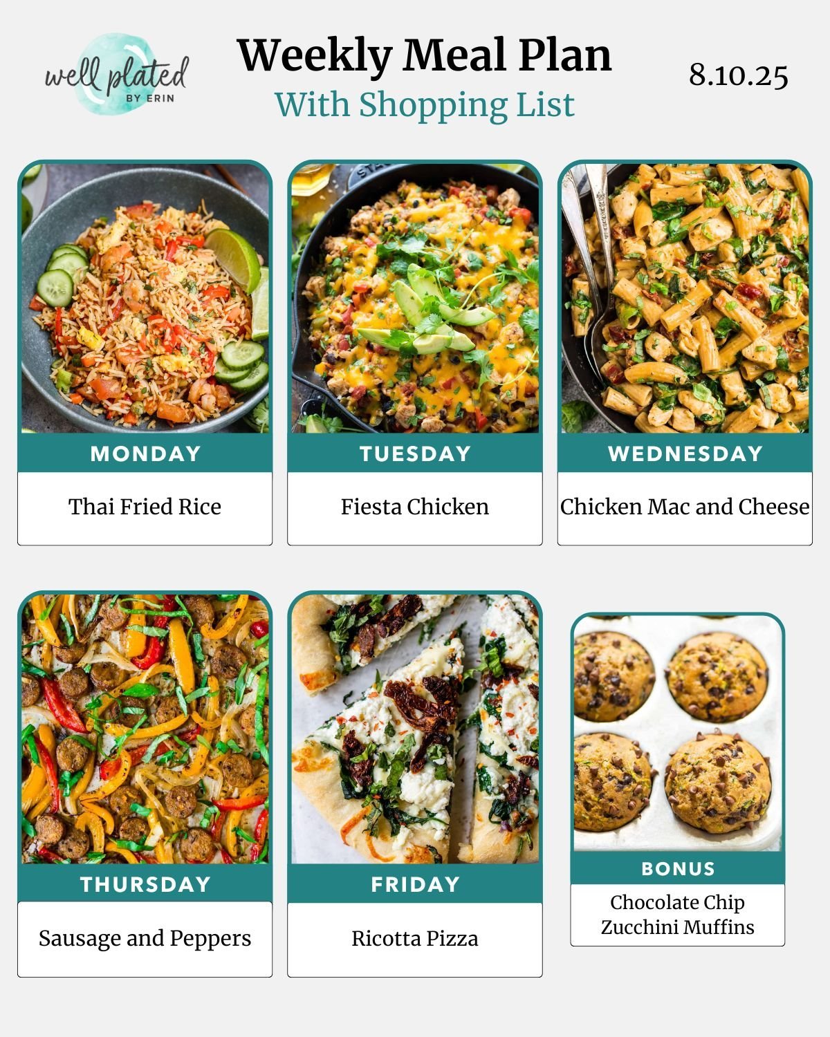 Yes! Our Weekly Meal Plans are created with a family of 4 in mind. To adjust this to fit the needs of your family, simply press the “+” or “-” symbols underneath each dish to adjust the servings amounts. Doing this will also automatically update your shopping list. You can also adjust serving amounts in the shopping list. For help with this, click here for tutorials. Still stuck? Reach out to us at hello@wellplated.com.