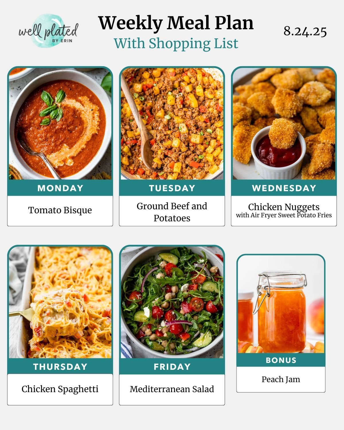 Yes! Our Weekly Meal Plans are created with a family of 4 in mind. To adjust this to fit the needs of your family, simply press the “+” or “-” symbols underneath each dish to adjust the servings amounts. Doing this will also automatically update your shopping list. You can also adjust serving amounts in the shopping list. For help with this, click here for tutorials. Still stuck? Reach out to us at hello@wellplated.com.
