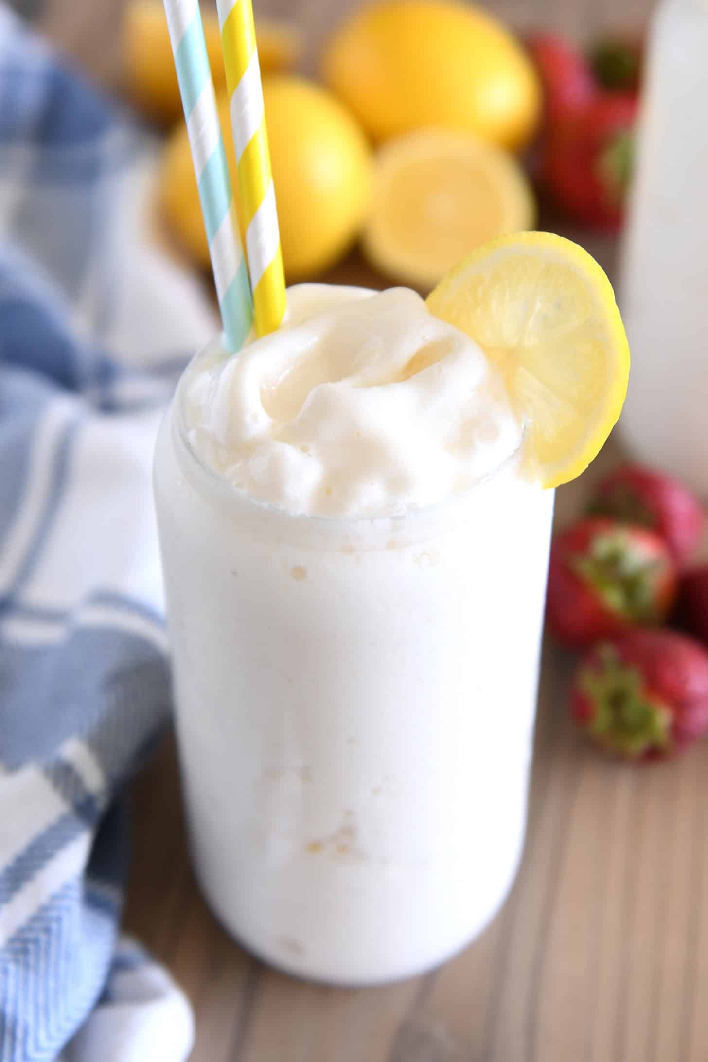 This whipped frosted lemonade is incredibly simple and so refreshing and delicious. All you need are four simple ingredients and a blender!